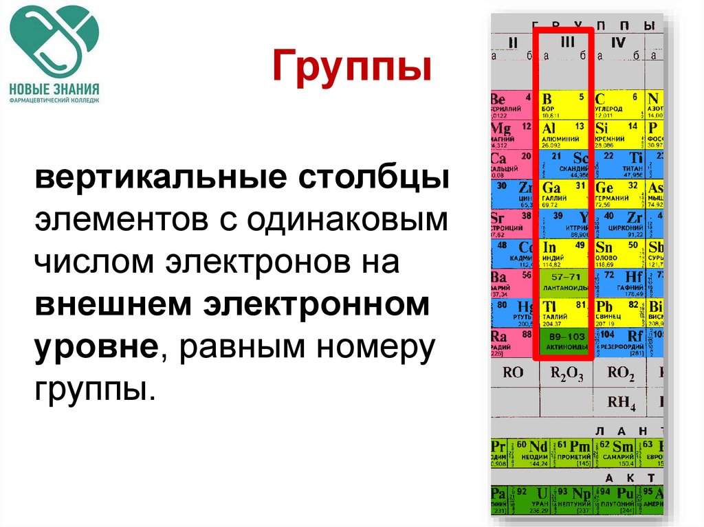 Номер группы = число внешних электронов