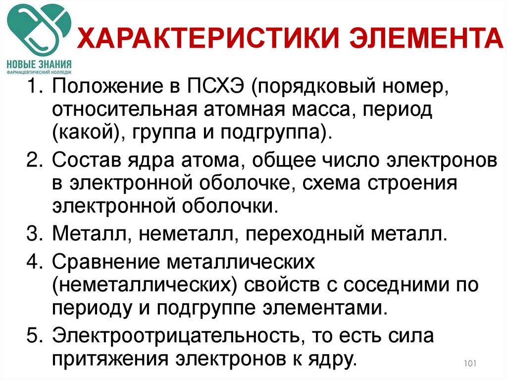 101. ХАРАКТЕРИСТИКИ ЭЛЕМЕНТА
