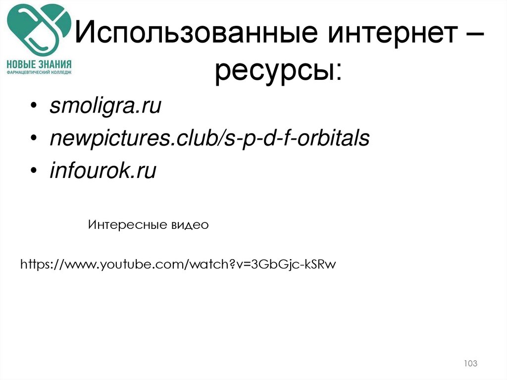 102103. Использованные интернет – ресурсы: