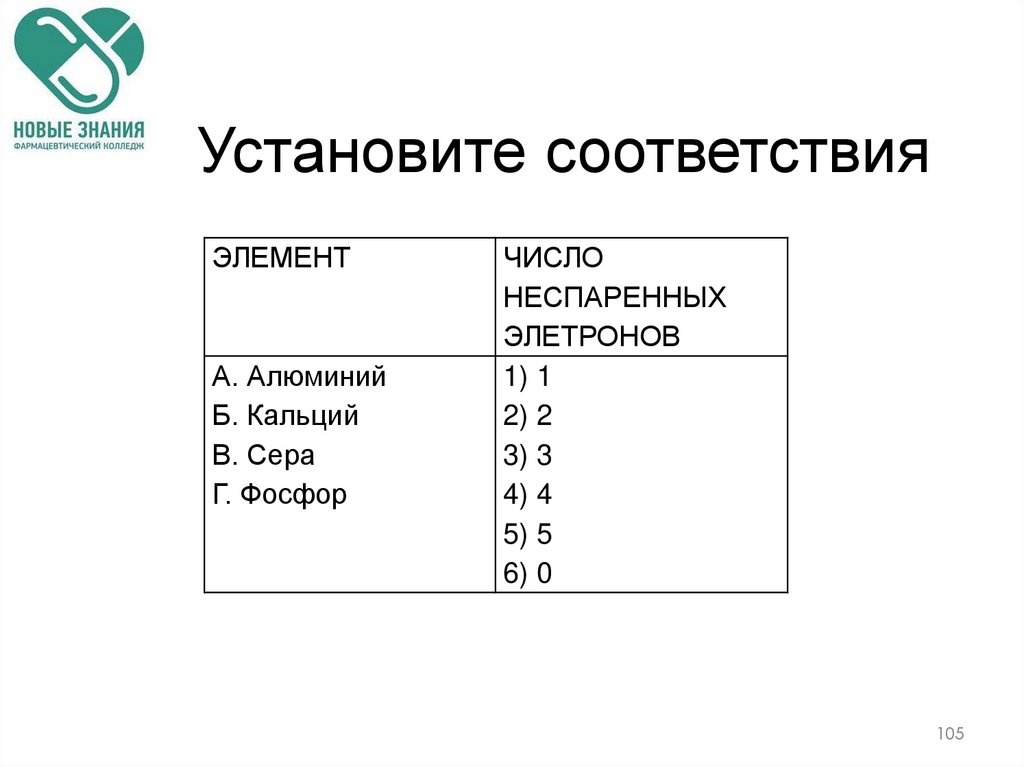 105. Установите соответствия