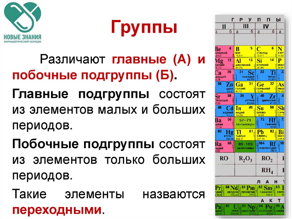 Различают главные (А) ипобочные подгруппы (Б).