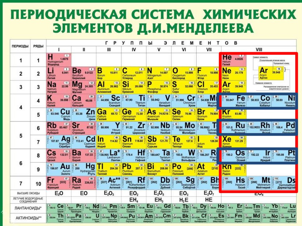 Rb, Cs, Fr) и заканчивается благородным