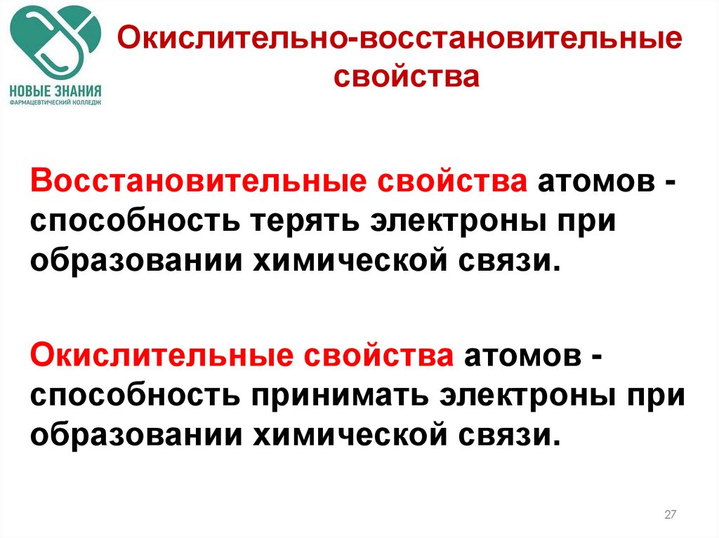 •свойства образованных химическими