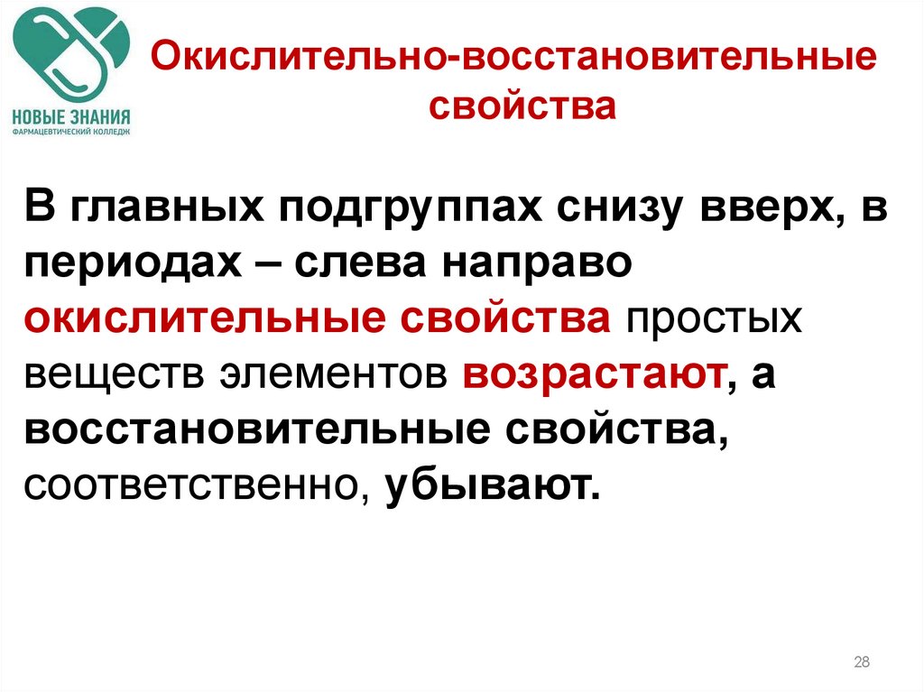 (неметаллических) свойств с соседними по
