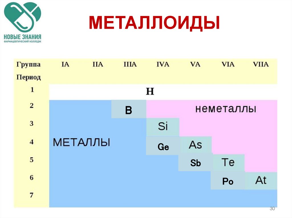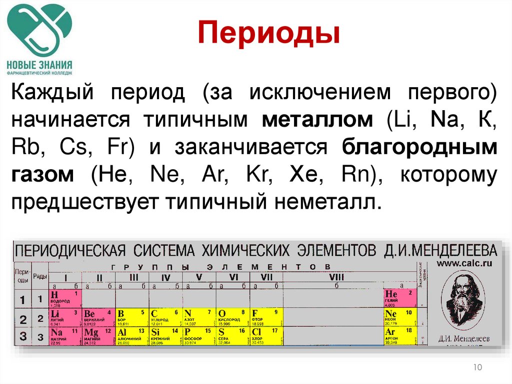 Каждый период (за исключением первого)начинается типичным металлом (Li, Nа, К,
