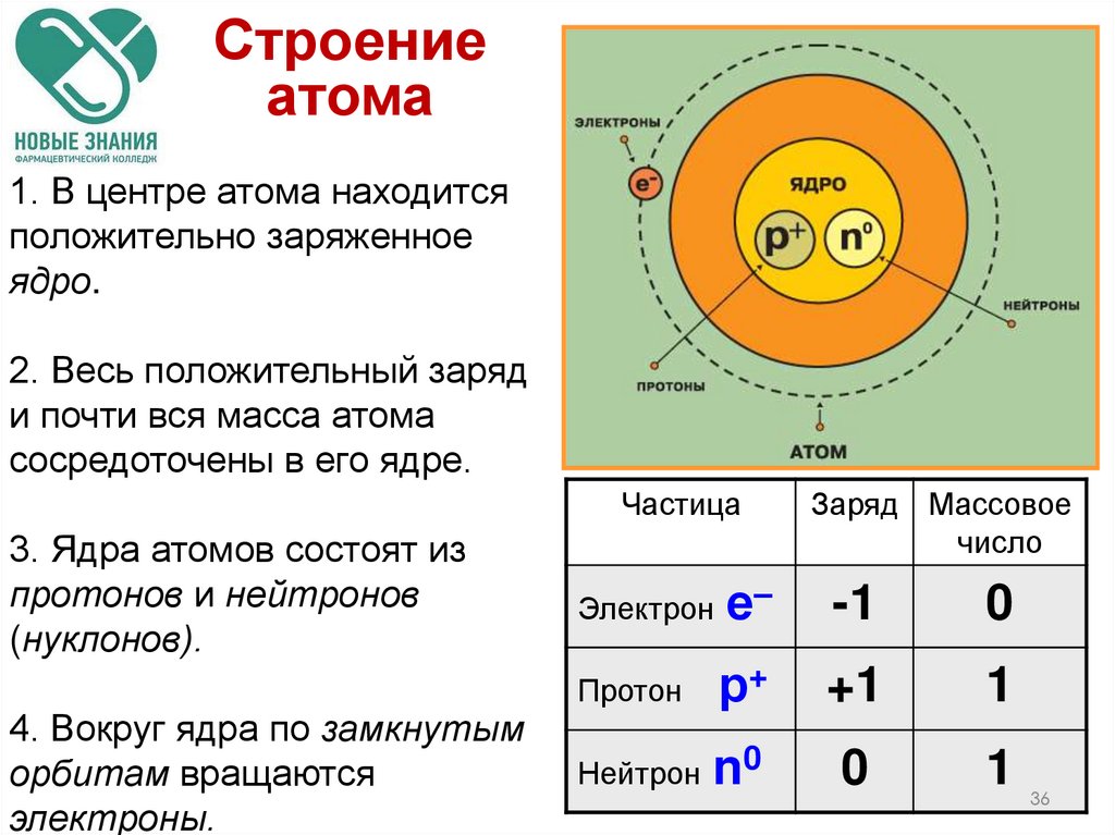 2. Состав ядра атома, общее число электронов
