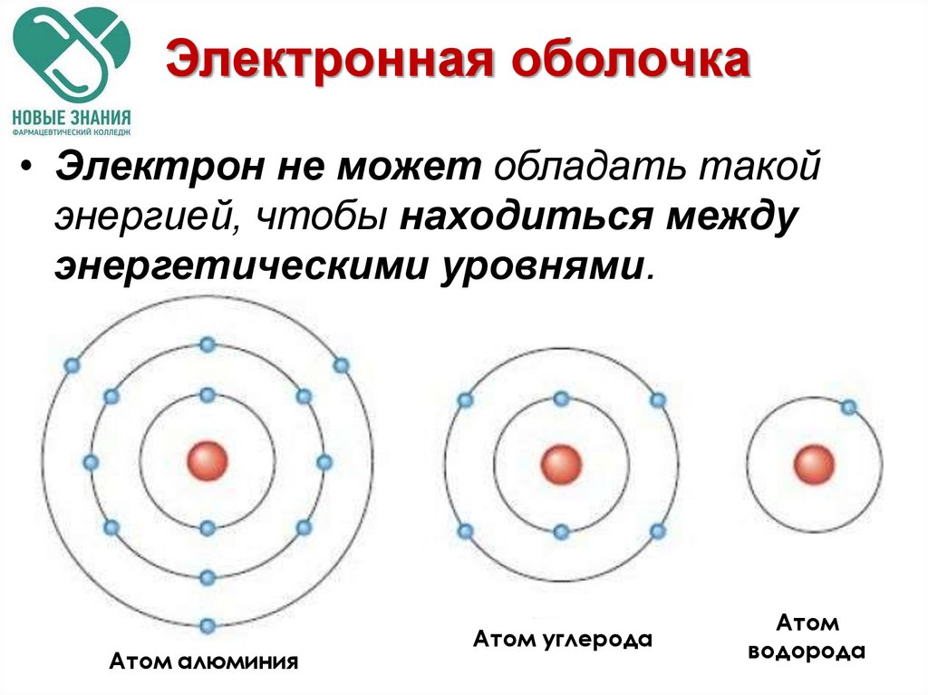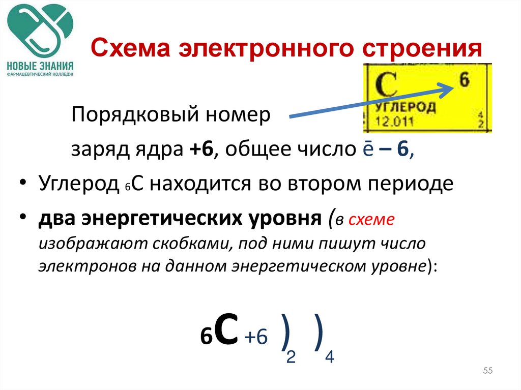 в электронной оболочке, схема строения