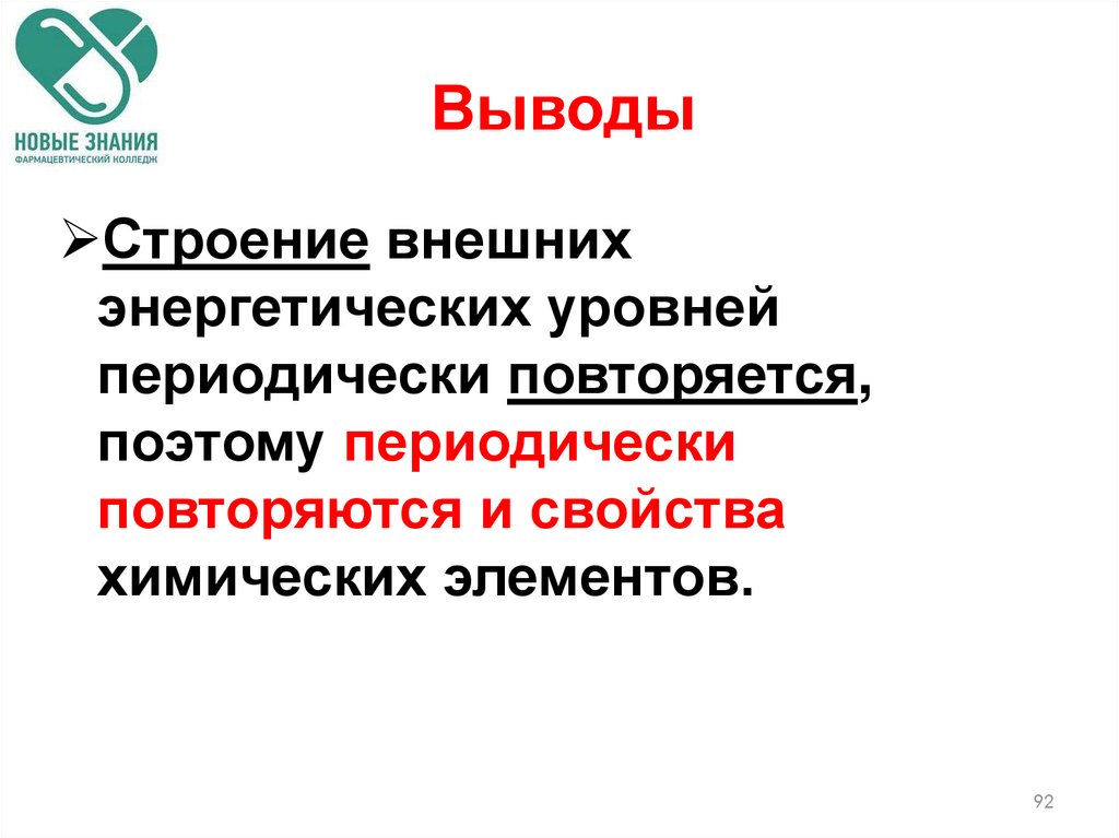 Современная трактовка Периодическогозакона: