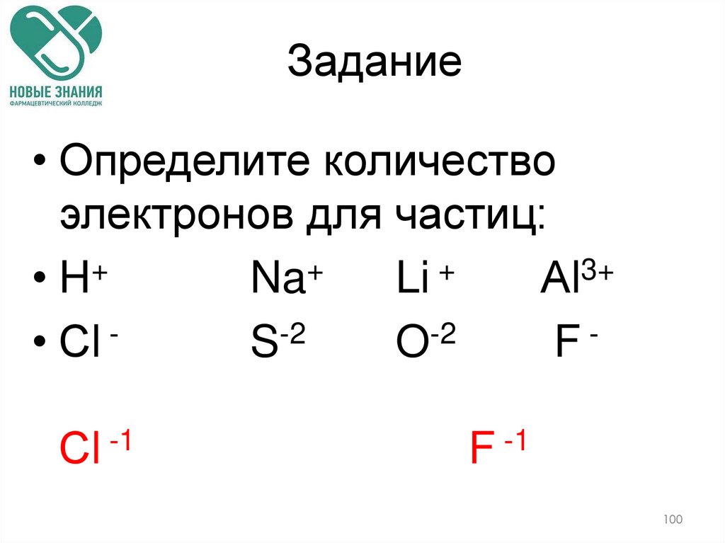 • Определите количествоэлектронов для частиц: