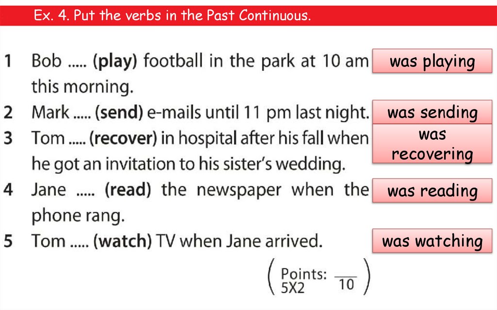 Ex. 4. Put the verbs in the Past Continuous.was playing