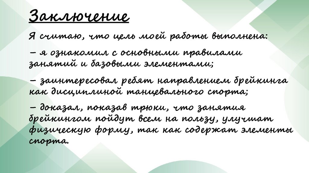 ЗаключениеЯ считаю, что цель мо ей работы выполнена: