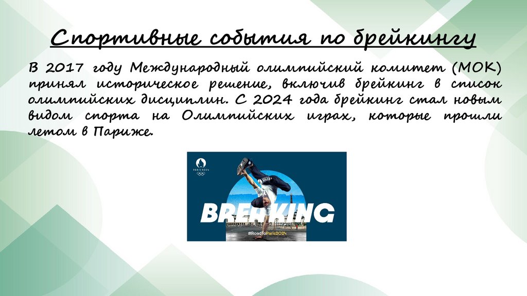 олимпийских дисциплин. С 2024 года бр ейкинг стал новым