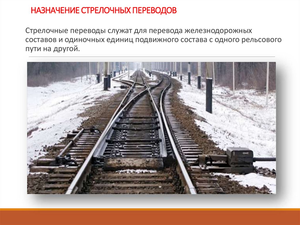 Стрелочные переводы служат для перевода железнодорожныхсоставов и одиночных единиц подвижного состава с одного рельсового