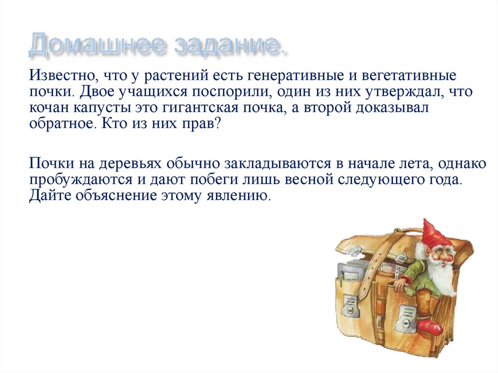 Известно, что у растений есть генеративные и вегетативныепочки. Двое учащихся поспорили, один из них утверждал, что