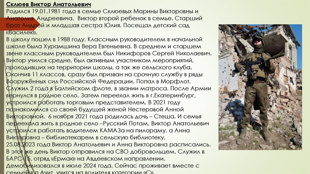 В этот же день Виктор отправился на СВО добровольцем. Служил в