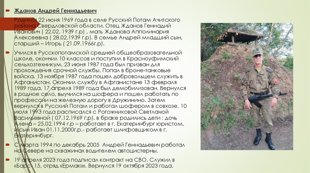 Жданов Андрей ГеннадьевичРодился 22 июня 1969 года в селе Русский Потам Ачитского