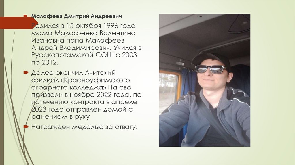 Малафеев Дмитрий АндреевичРодился в 15 октября 1996 года