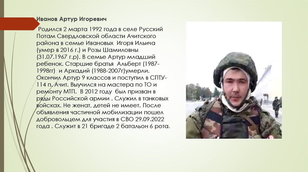 Иванов Артур ИгоревичРодился 2 марта 1992 года в селе Русский