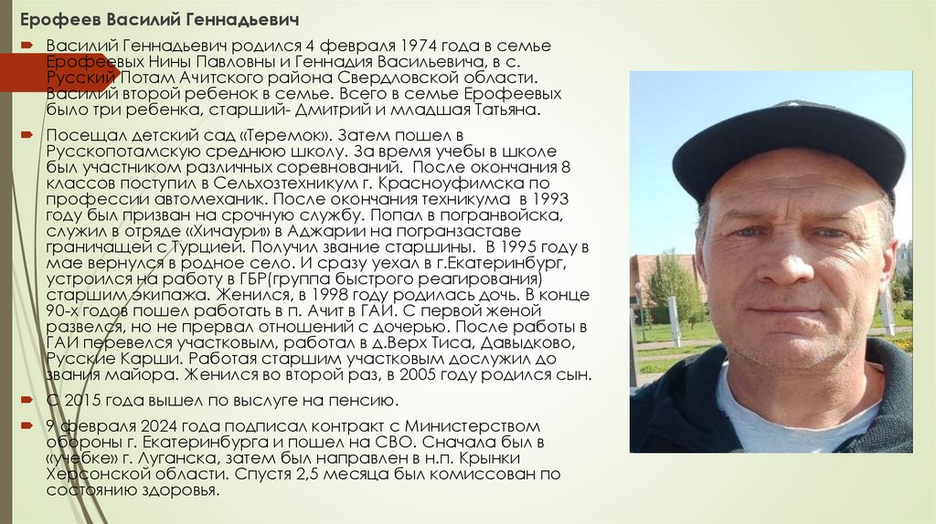 Ерофеев Василий ГеннадьевичВасилий Геннадьевич родился 4 февраля 1974 года в семье
