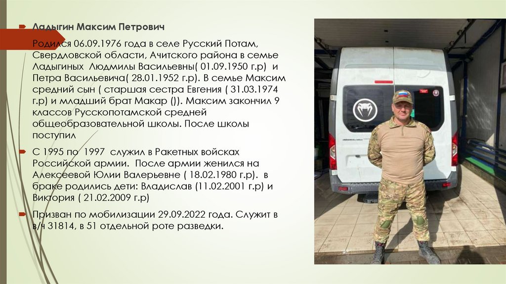 Ладыгин Максим ПетровичРодился 06.09.1976 года в селе Русский Потам,
