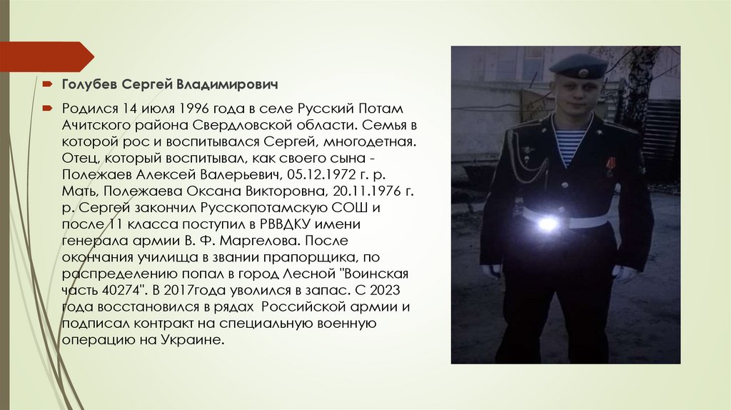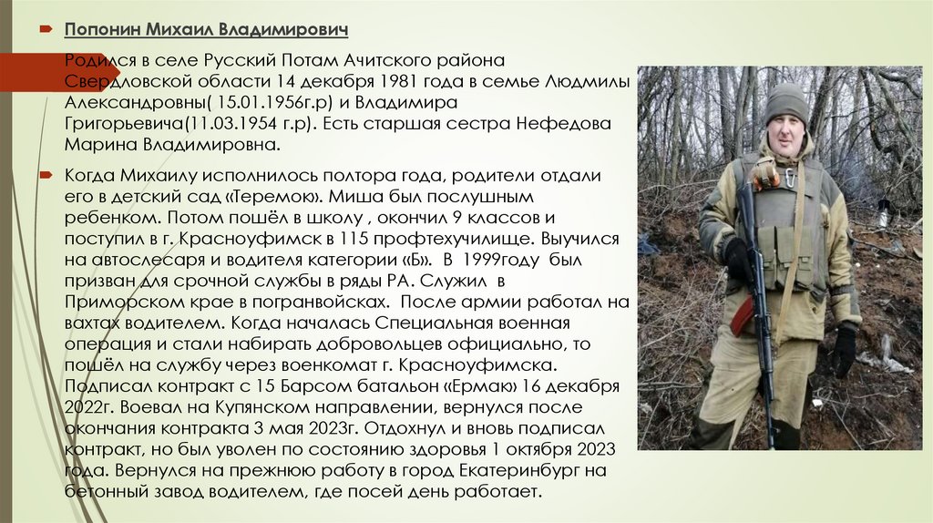 обороны г. Екатеринбурга и пошел на СВО. Сначала был в