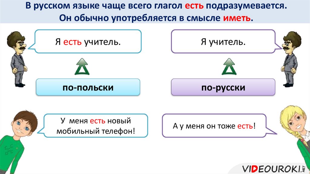 В русском языке чаще всего глагол есть подразумевается.Он обычно употребляется в смысле иметь.