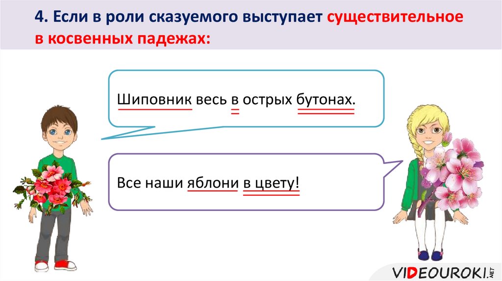 4. Если в роли сказуемого выступает существительноев косвенных падежах:
