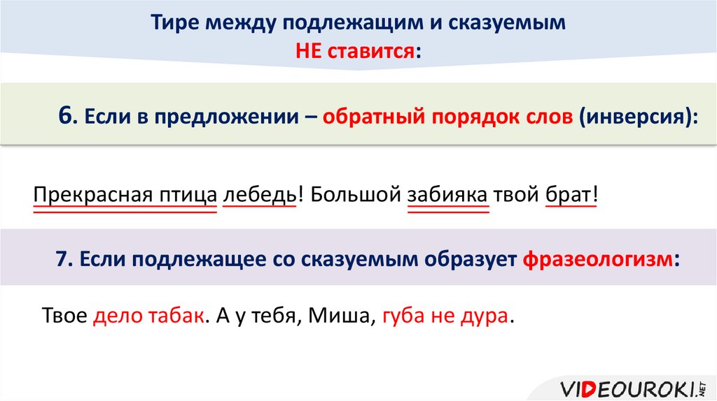 7. Если подлежащее со сказуемым образует фразеологизм: