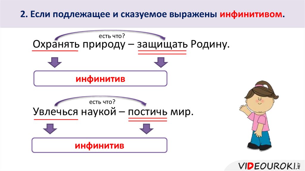 2. Если подлежащее и сказуемое выражены инфинитивом.есть что?