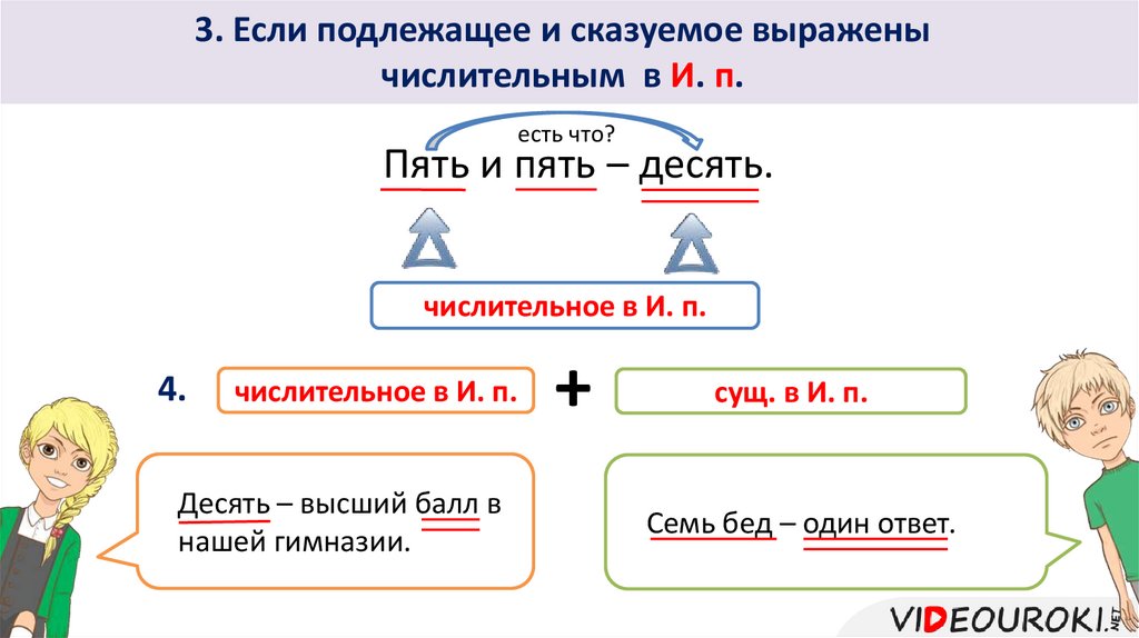 3. Если подлежащее и сказуемое выраженычислительным в И. п.
