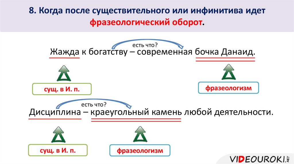 8. Когда после существительного или инфинитива идетфразеологический оборот.