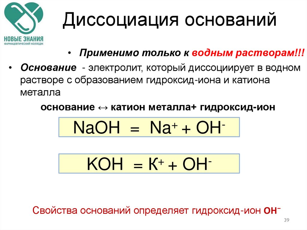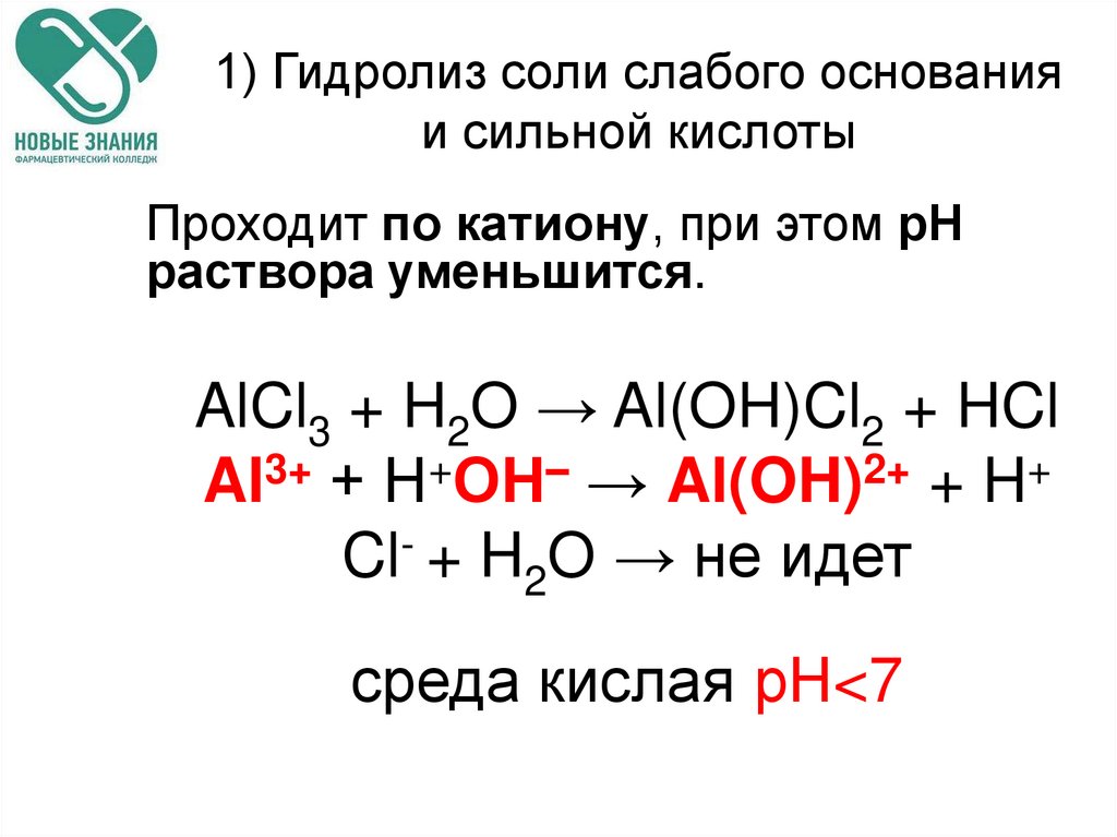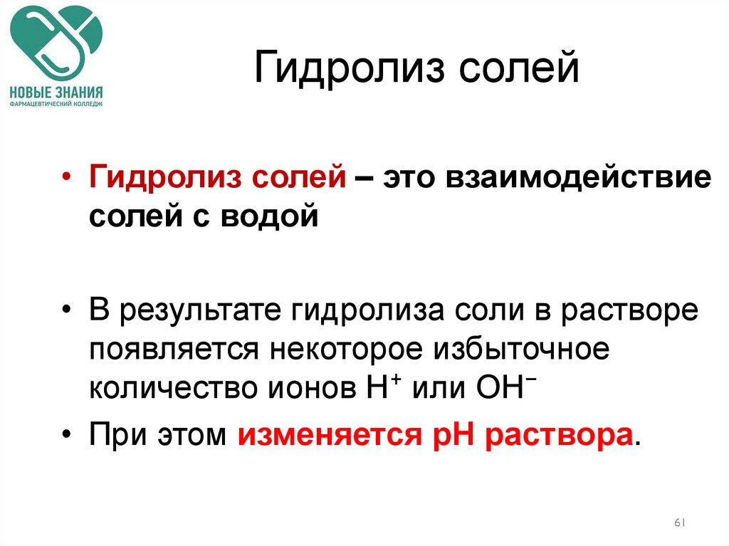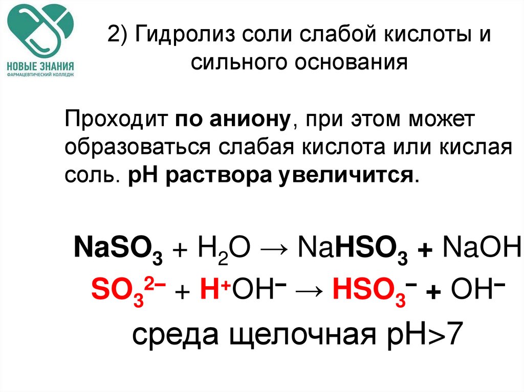 67. 2) Гидролиз соли слабой кислоты и сильного основания
