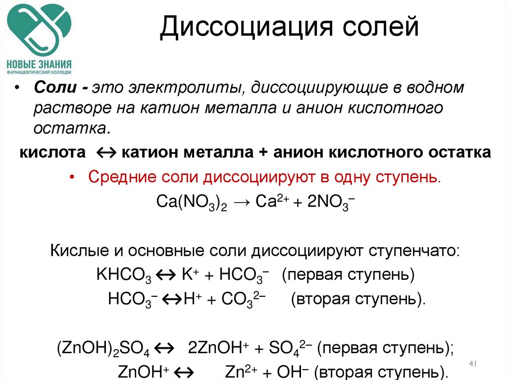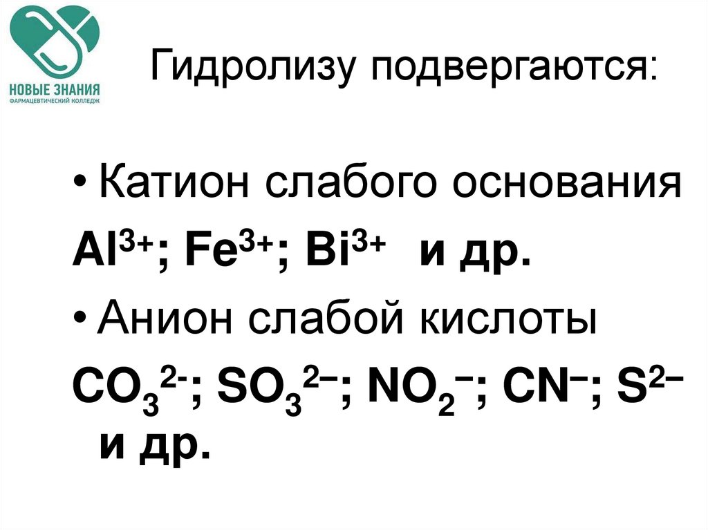 Проходит по аниону, при этом можетобразоваться слабая кислота или кислая