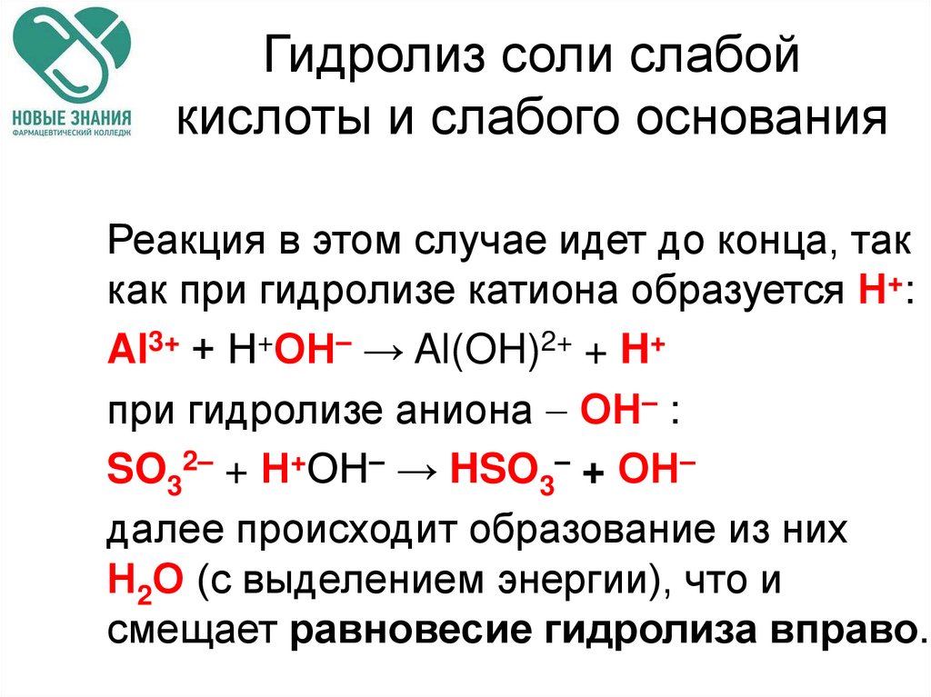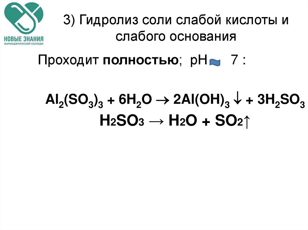69. 3) Гидролиз соли слабой кислоты и слабого основания