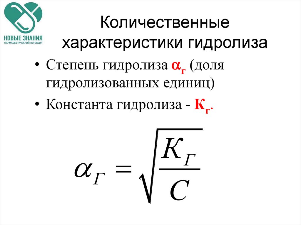 Na2SO4 + H2O → не идет72. Количественные характеристики гидролиза
