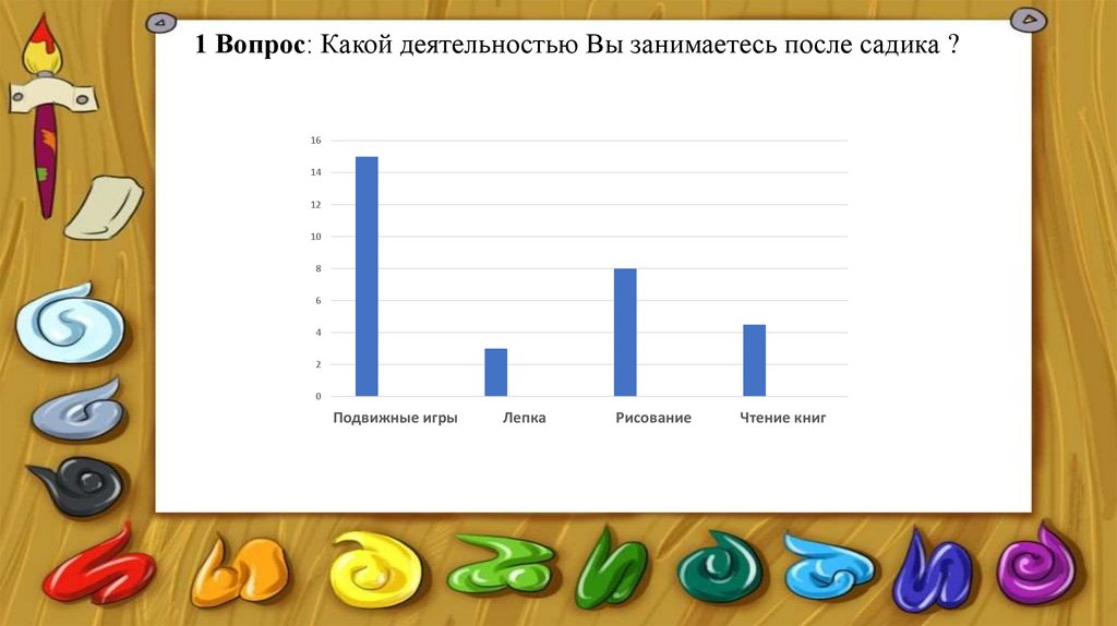 1 Вопрос: Какой деятельностью Вы занимаетесь после садика ?16