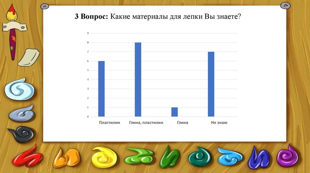 3 Вопрос: Какие материалы для лепки Вы знаете?9