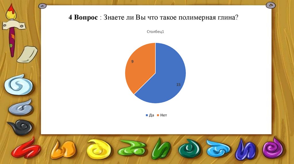 4 Вопрос : Знаете ли Вы что такое полимерная глина?Столбец1