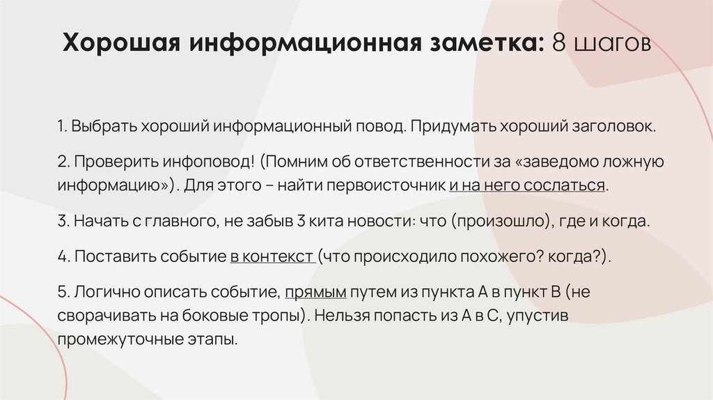 2. Хорошая информационная заметка: 8 шагов
