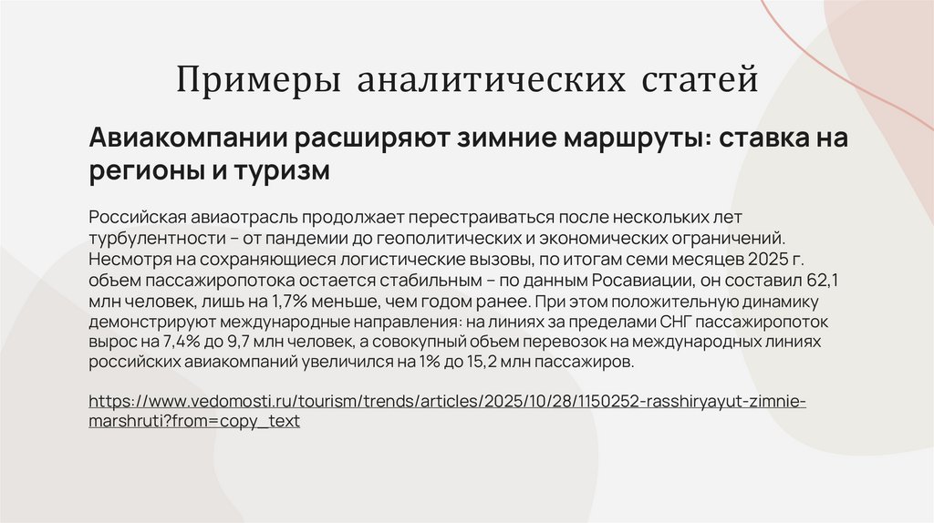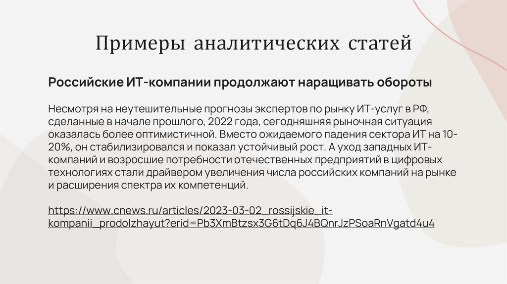 19. Примеры аналитических статей