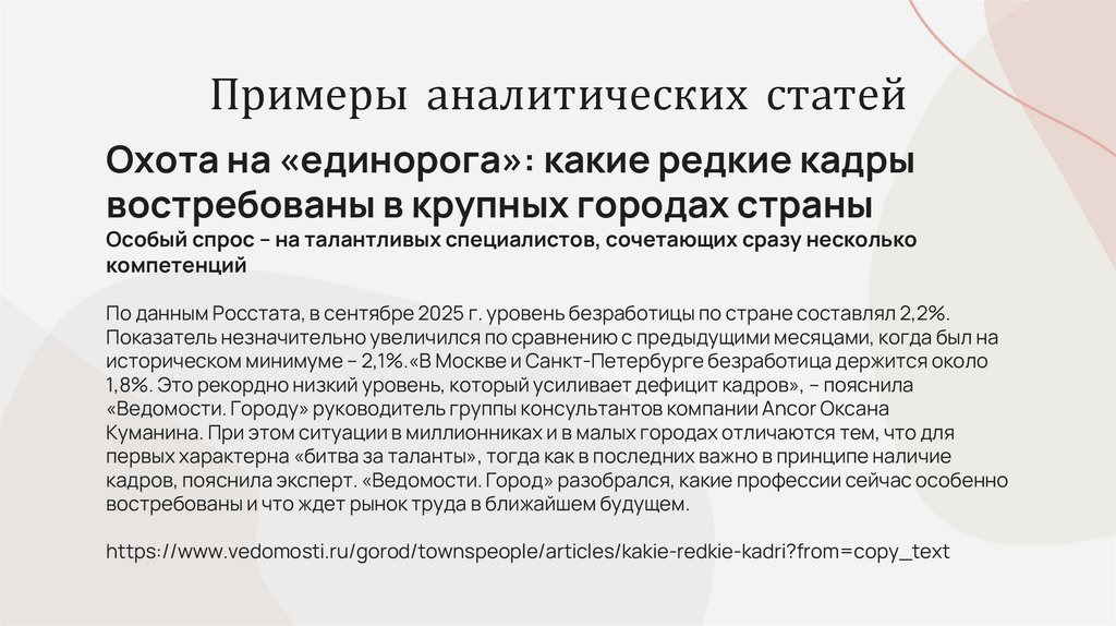 18. Примеры аналитических статей