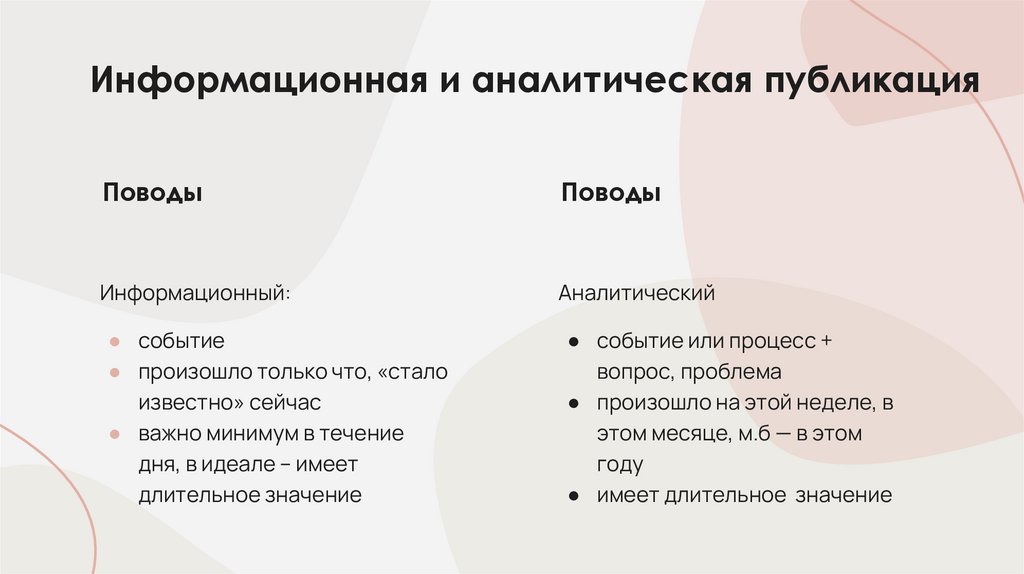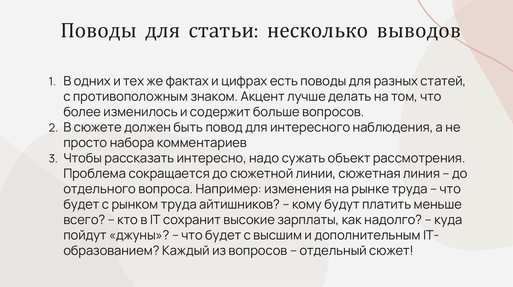 1. Выбрать хороший аналитический повод (почему мы об этом говоримименно сегодня? многим ли это интересно?).