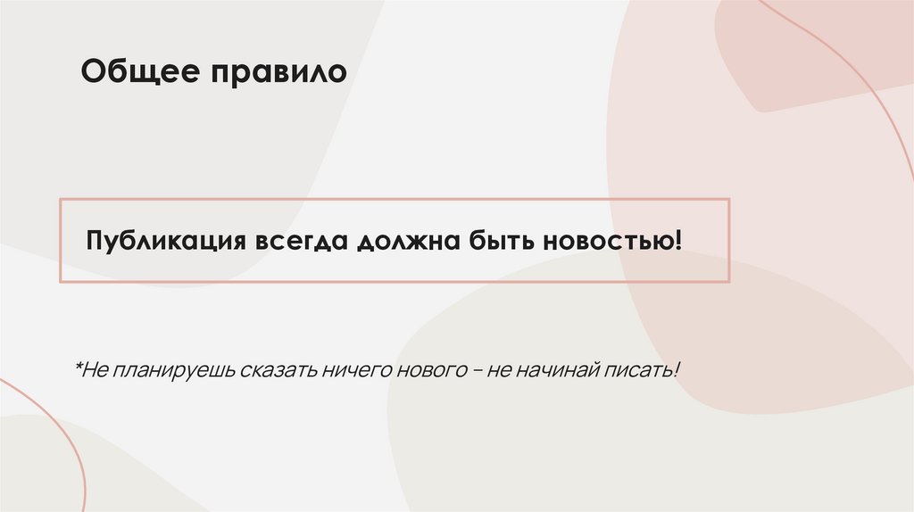 Публикация всегда должна быть новостью!*Не планируешь сказать ничего нового – не начинай писать!