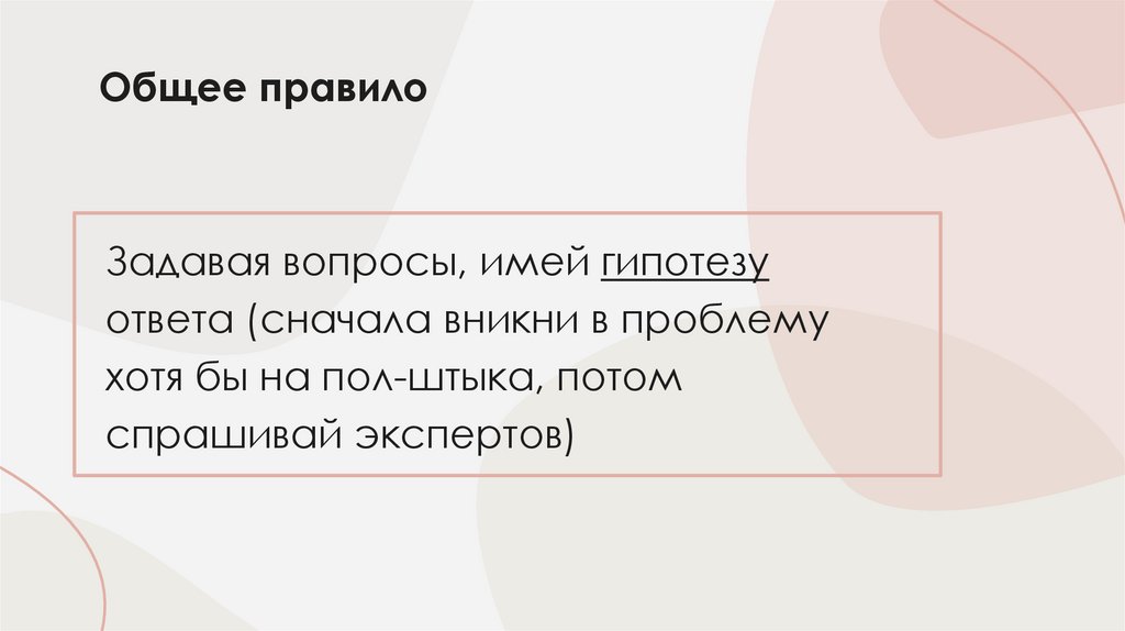 Задавая вопросы, имей гипотезуответа (сначала вникни в проблему