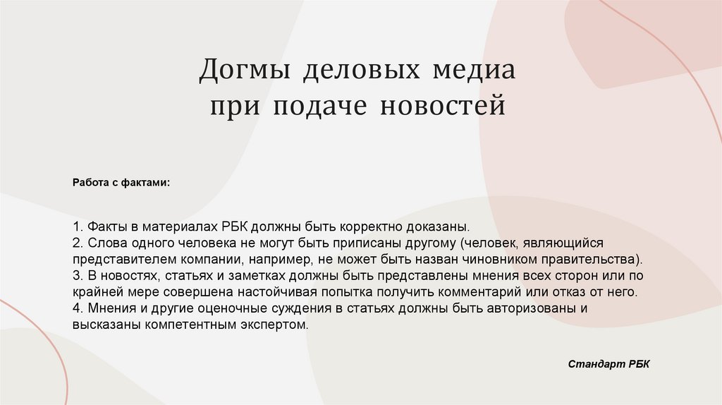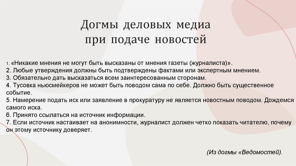 5. Догмы деловых медиа при подаче новостей