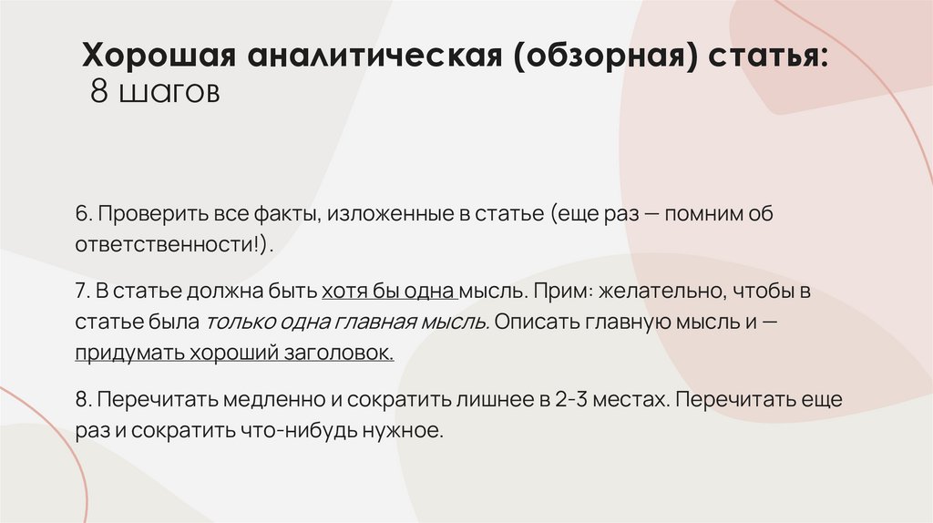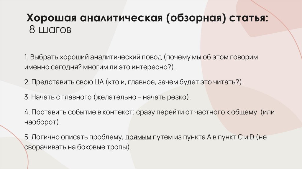 8. Хорошая аналитическая (обзорная) статья: 8 шагов