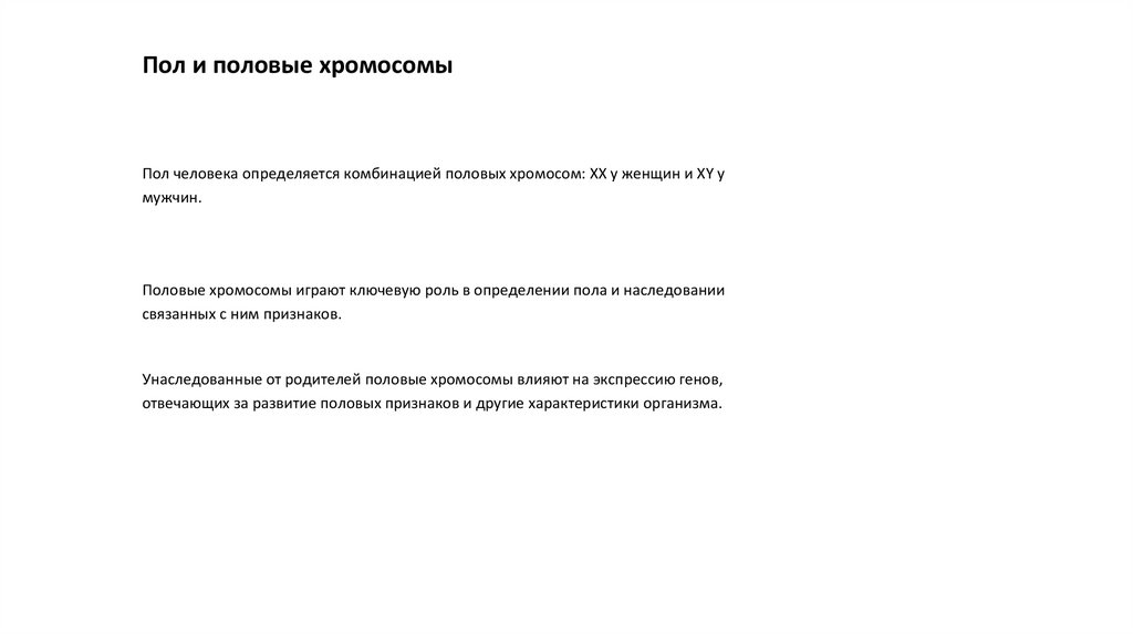 Пол и половые хромосомыПол человека определяется комбинацией половых хромосом: XX у женщин и XY у