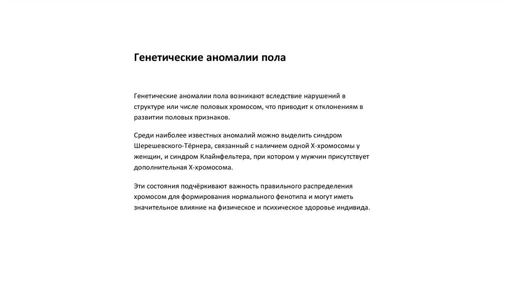 Генетические аномалии полаГенетические аномалии пола возникают вследствие нарушений в