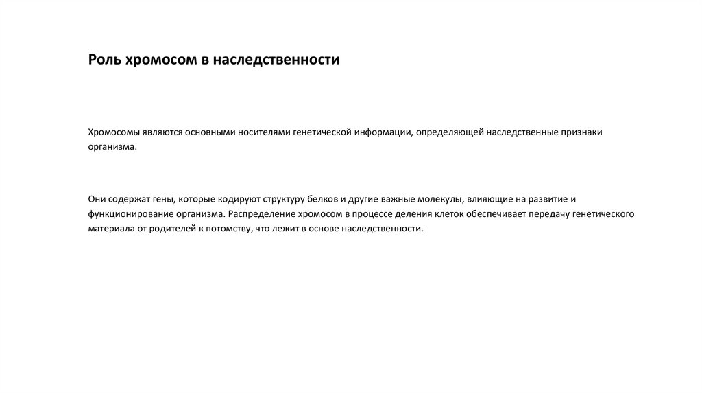 Роль хромосом в наследственностиХромосомы являются основными носителями генетической информации, определяющей наследственные признаки