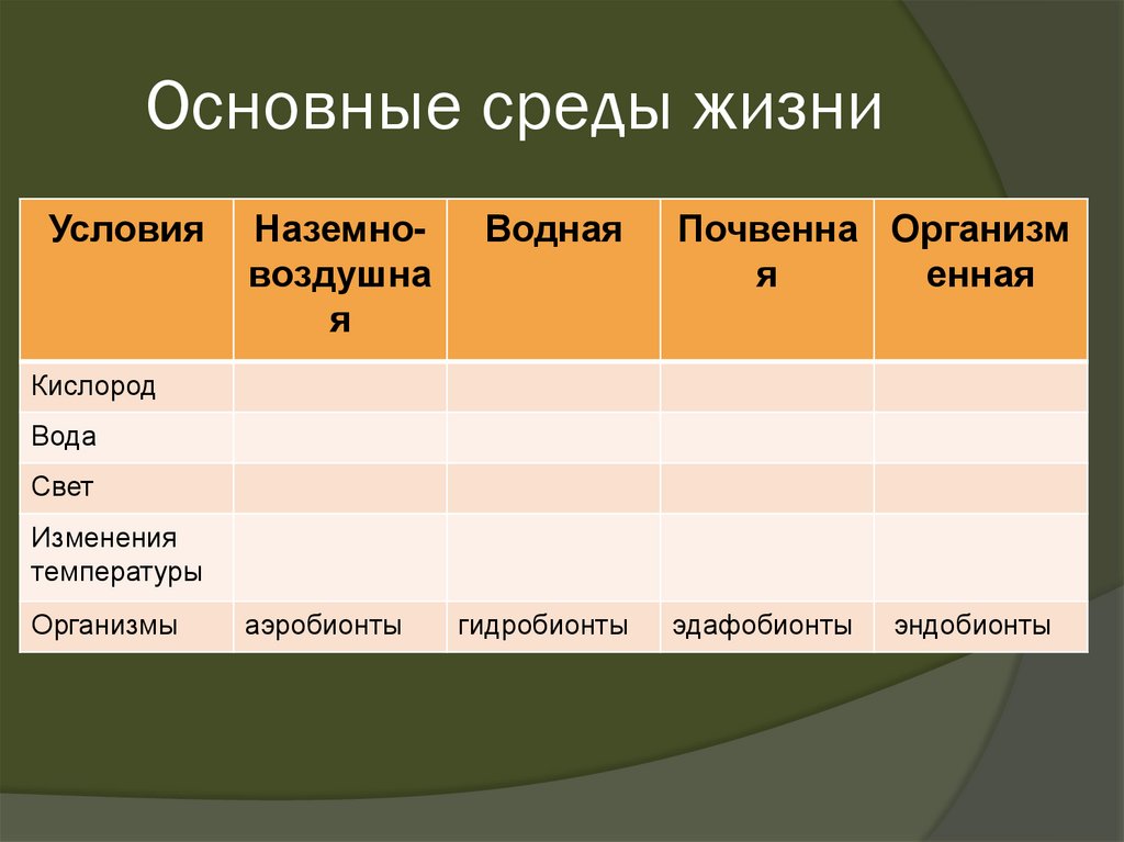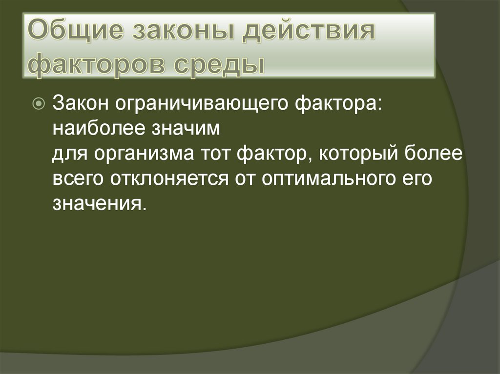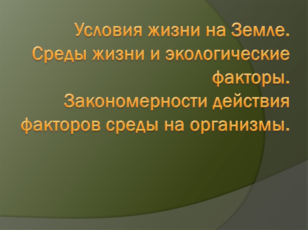 1. Условия жизни на Земле. Среды жизни и экологические факторы. Закономерности действия факторов среды на организмы.